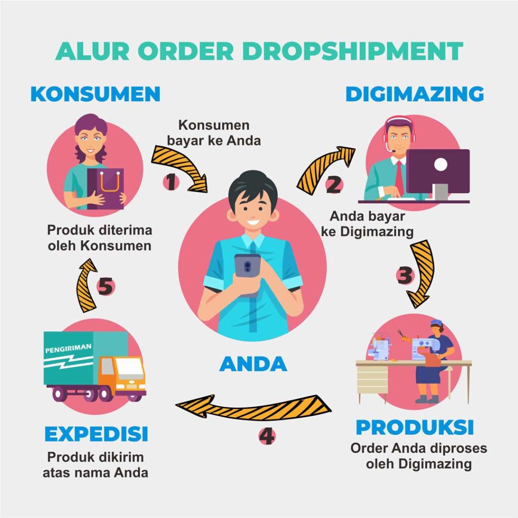 Dropshipping adalah model bisnis ritel di mana Anda sebagai dropshipper menjual produk – produk dari Supplier ( Digimazing ) tanpa perlu menyimpan stok produk (barang fisik). Ketika ada pesanan, Anda meneruskannya kepada kami, untuk kemudian kami produksi, mengkemasnya dan mengirimkan produk orderan Anda langsung ke pelanggan atas nama Anda bukan atas nama Digimazing.